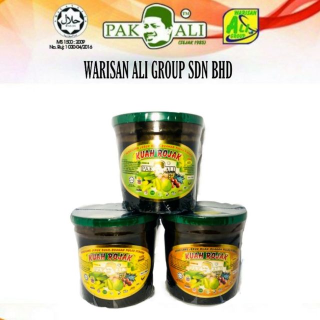 Selain itu Jeruk Madu Pak Ali turut mengeluarkan Kuah Rojak Pak Ali. Kacang tanah 12 kilo digoreng dengan minyak sampai betul2 masak Udang kering rm3 Bijan rm2 digoreng tanpa minyak goreng sekali mudah kerja 10 keping biskut marie Cili blander 1 cawan ikut nak pedas lagi tambah sendiri Air asam jawa 1 cawan pekat Gula melaka 1 ketul Gula pasir 12 kilo. Ianya pasti dapat membuat sesiapa yang merasainya teringat ingat.