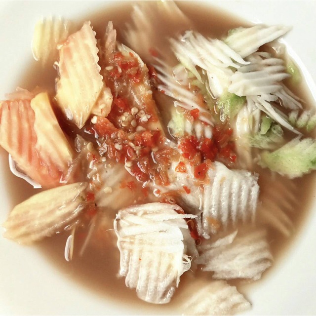 Meskipun begitu rasa dari rujak kuah pindang ini sangat lezat dan porsinya cukup mengenyangkan. Baca Juga. Siramkan kuah yang sudah dicampur tadi di atas buah-buahan yang sudah dipotong.